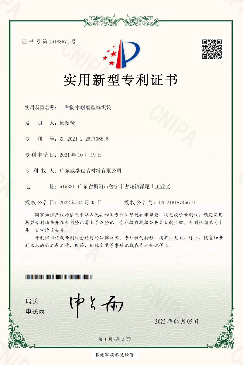 Guangdong Weifu Packaging Material Co., Ltd. was established in 2000, the predecessor can be traced back to the "Zhanlong Yangmeishan Plastic Wire Factory" established in 1981. Guangdong Weifu is located in Yangweishan Industrial Area, Zhanlong Town, Puning City, Guangdong Province, covering an area of about 180K square meters, with a registered capital of 45.2 million US dollars, a total investment of 800 million RMB and an annual sales volume of 650 million RMB.